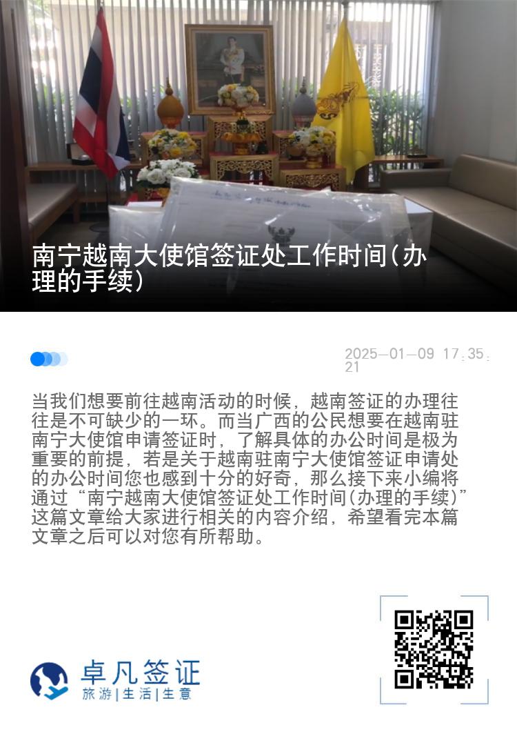 当我们想要前往越南活动的时候,越南签证的办理往往是不可缺少的一环。而当广西的公民想要在越南驻南宁大使馆申请签证时,了解具体的办公时间是极为重要的前提,若是关于越南驻南宁大使馆签证申请处的办公时间您也感到十分的好奇,那么接下来小编将通过“南宁越南大使馆签证处工作时间(办理的手续)”这篇文章给大家进行相关的内容介绍,希望看完本篇文章之后可以对您有所帮助。